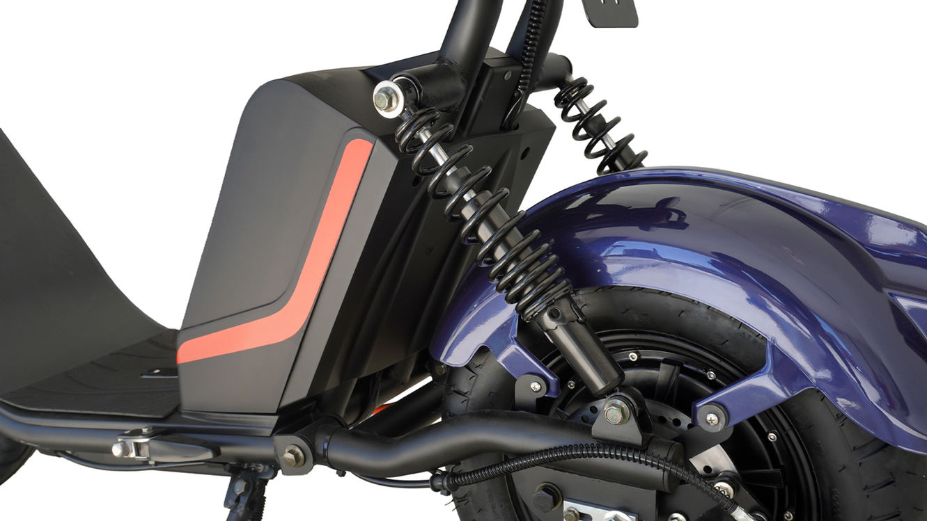Potência: 1000 W | Autonomia: até 50 km | Velocidade: 32 km/h | Bateria: 60 V / 20 Ah | Garantia: 1 ano